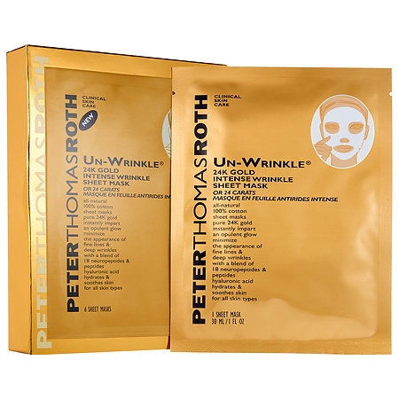 Peter Thomas Roth Un-Wrinkle 24K Gold Intense Wrinkle Sheet Mask. Reduce the appearance of deep wrinkles with a potent peptide mask. $68 for six. Sephora.