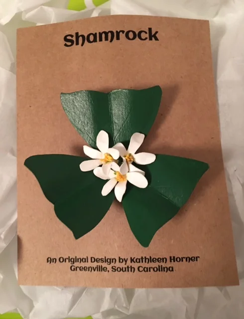 With St. Patrick's Day coming up on March 17, show your Irish pride with style by wearing one of South Carolina artist Kathleen Horner's beautifully crafted Shamrocks.